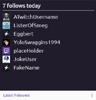 It’s polite to make new followers feel welcome by giving them a shout out. As one of the best Twitch extensions for new streamers, Latest Followers is a panel extension that displays the username of anyone who follows your channel.