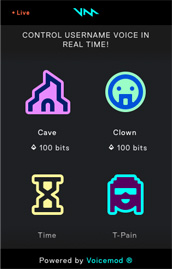 Voicemod Bits is another great extension for viewer engagement. It is a digital voice changer that your audience can use to change your voice while you stream. The extension has a variety of voice filters available, including robot, chipmunk, creepy clown, and more.
