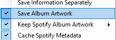 2. Under the same menu, hover over Keep Spotify Album Artwork and select Medium or Large. This will make it so the album image isn’t blurry if you want to make it larger in OBS.