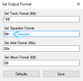 2. Under the Set Separator Format box, type in $$n and click Save.