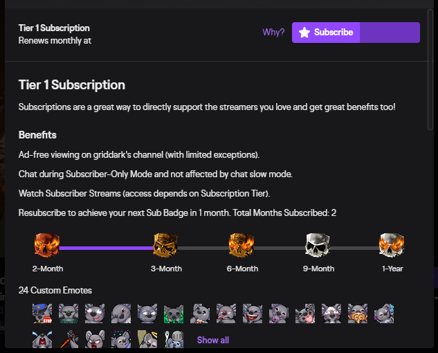 One of the most popular ways to donate to a streamer on Twitch is by subscribing to them. Subscribing allows all three parties to benefit – you get ad-free viewing, subscriber perks, and channel emotes.