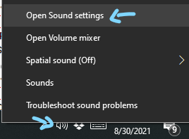 2. In your system tray, right click the speaker icon and select Open Sound settings.