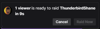 When the timer reaches zero, the Raid Now button illuminates. Even at this point, however, there is a bit of a buffer. Should you click on the button, then you and all the viewers still hanging around are immediately transported to the destination channel.