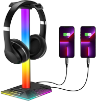 This RGB headphone stand from SIMOEFFI offers multiple lighting effects that complement your ambience, 2 USB ports, and an integrated aux port. It looks great on any desk, and keeps everything in one place.