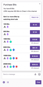 Becoming an affiliate allows you to start receiving donations in the form of Twitch bits (the website’s currency). Bits are purchased by viewers from Twitch, and they can donate them to you for support.