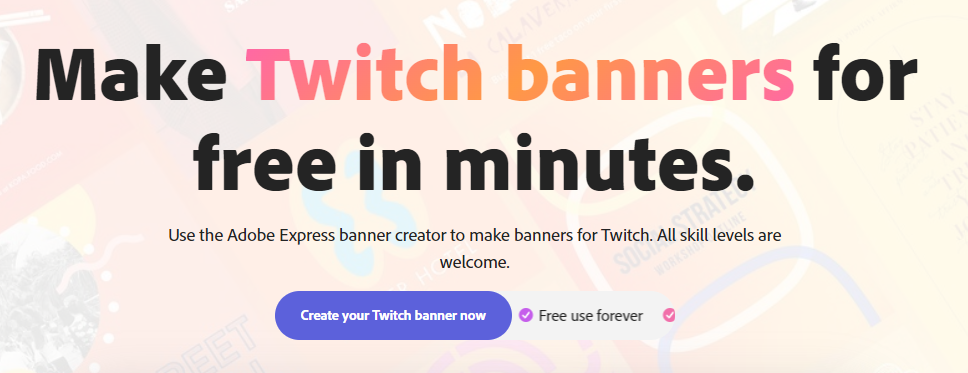 Adobe Express free Twitch Banner Maker is a great Twitch tool to create your own custom designed banners for your channel.
