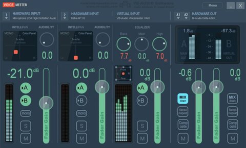 Voicemeeter is a virtual audio mixer that lets you control and split your PC’s audio. It gives you the ability to mix your voice with your music, in-game audio, or any PC sound.