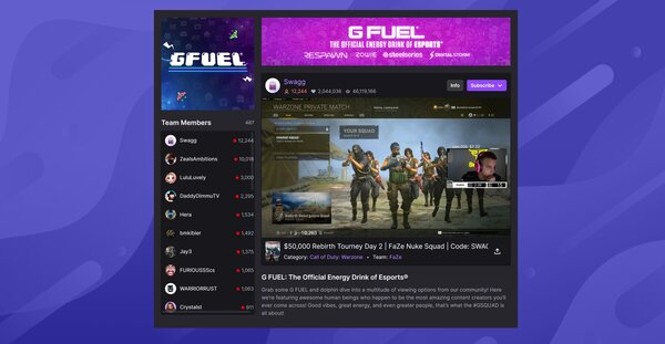 Do you know what the second most-watched twitch team is, according to Stream Charts? It’s G Fuel. Yep. The second-largest Twitch team in terms of hours watched is a sponsored team. In fact, outside of professional Esports teams, sponsored teams are the most common in the top 100.